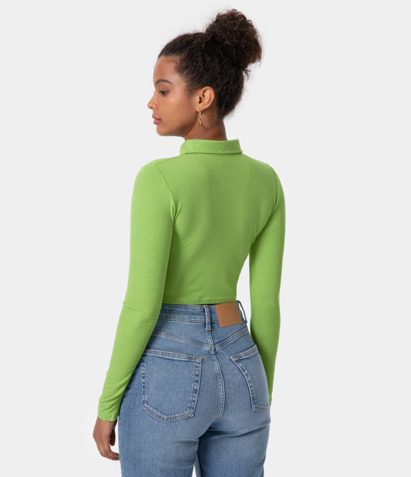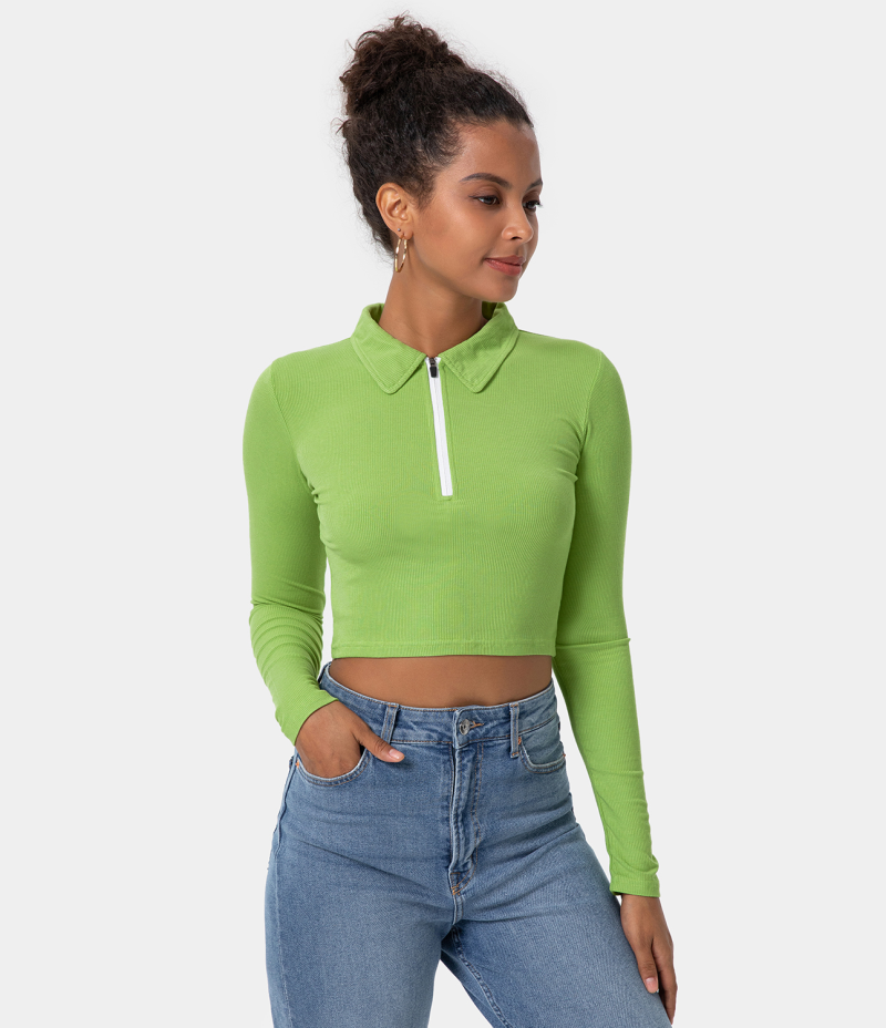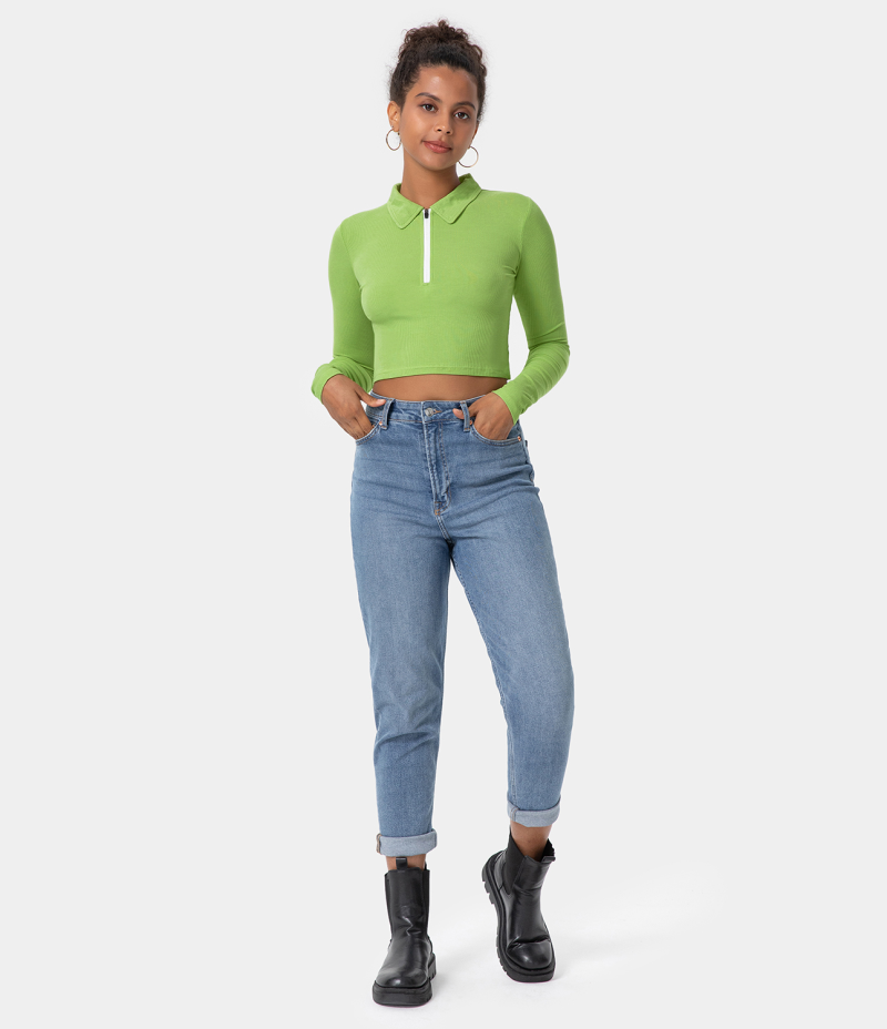 :: Halara Collared Half Zip Long Sleeve Cropped Sports Women's Tops Pale Green | MJVIXKB-94