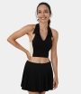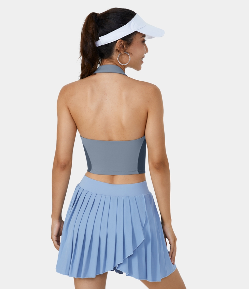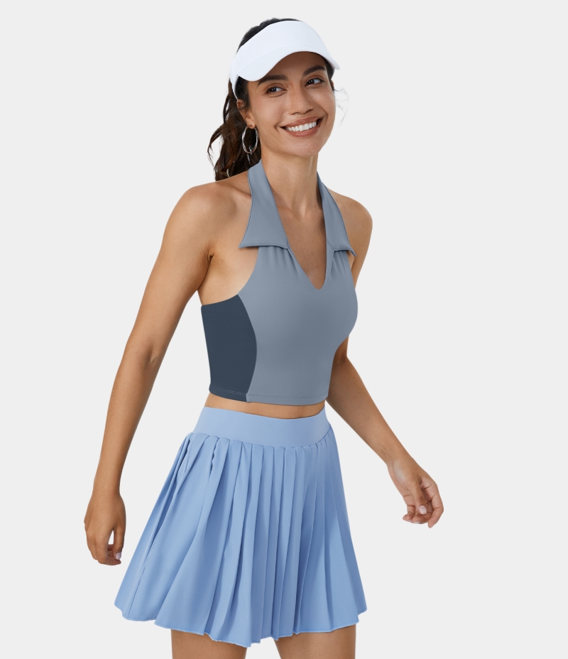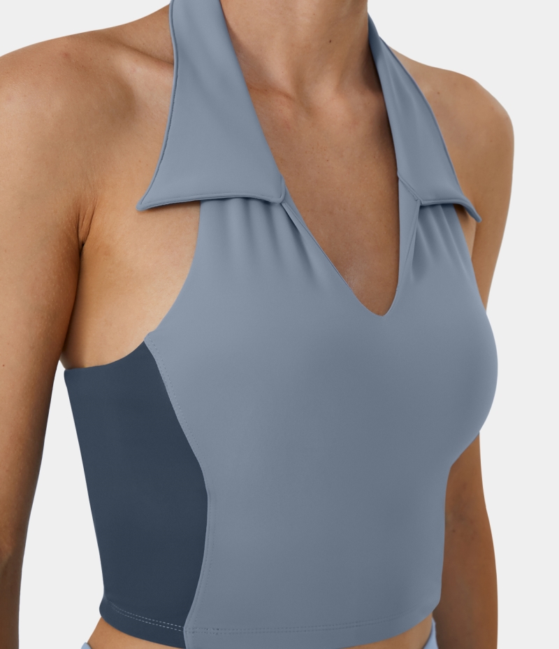 :: Halara Collared Halter Backless Color Block Cropped Golf Tank Women's Tops Blue Fog | SLQMFJX-76