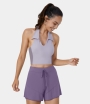 Halara Collared Halter Backless Color Block Cropped Golf Tank Women's Tops Blue Fog | SLQMFJX-76