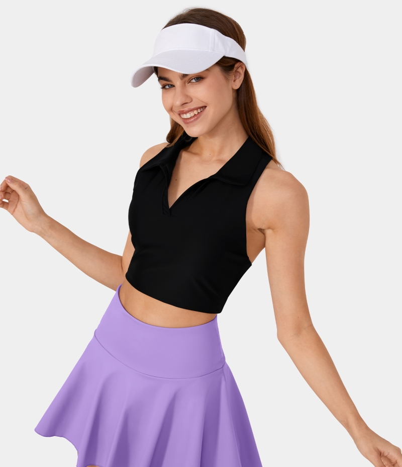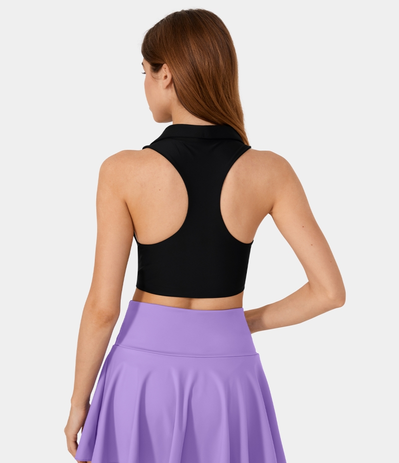 :: Halara Collared Racerback Cropped Tennis Tank Women's Tops Black | XOPEVCG-84