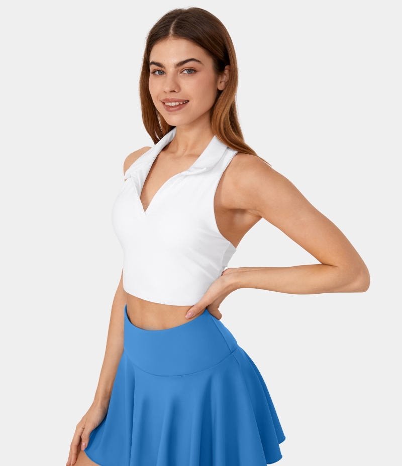 Halara Collared Racerback Cropped Tennis Tank Women's Tops White | LOTBXMY-74