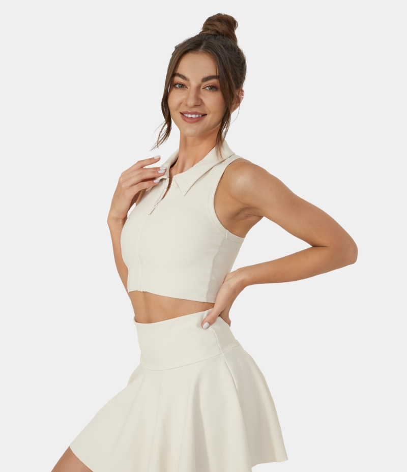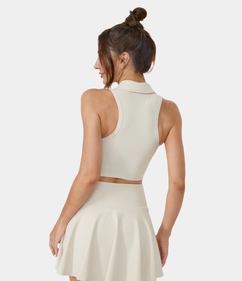 :: Halara Collared Zip Front Cropped Golf Tank Women's Tops White | FDSBQVT-67