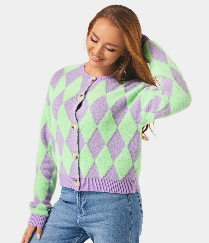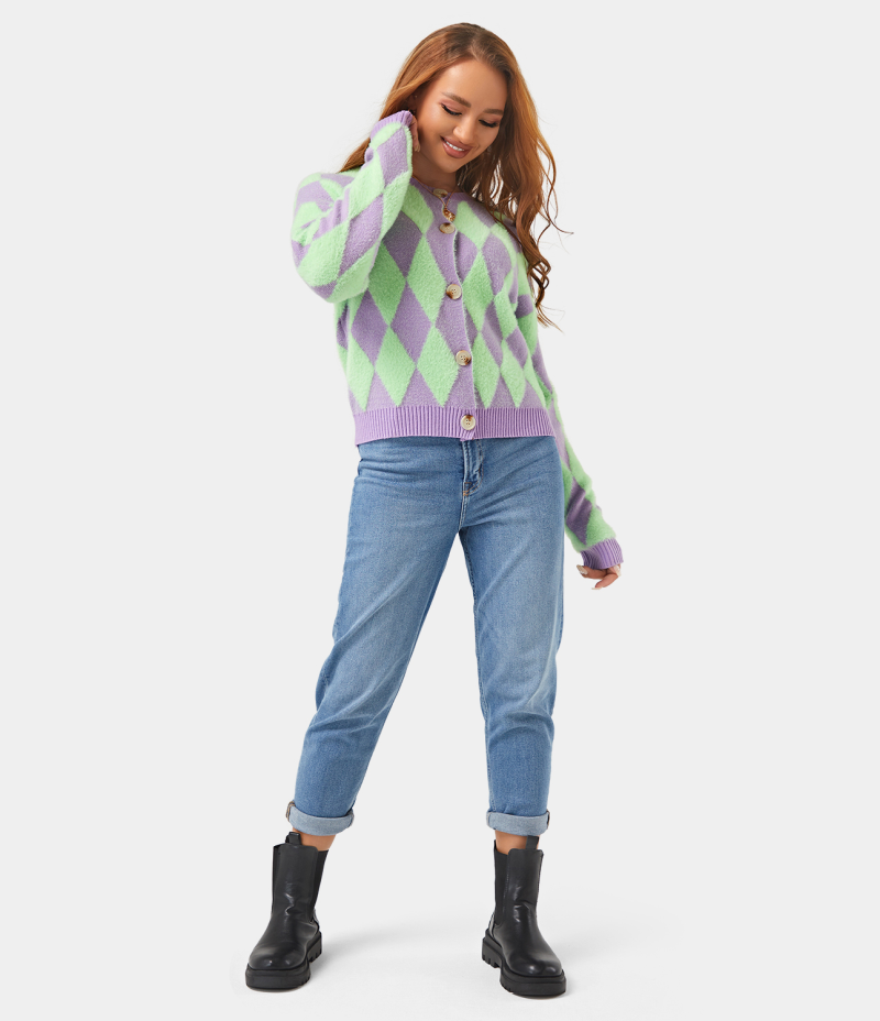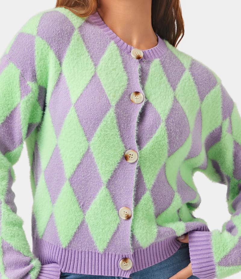 Halara Color Block Casual Front Button Cardigan Women's Tops Light Green | MPVBKAQ-42