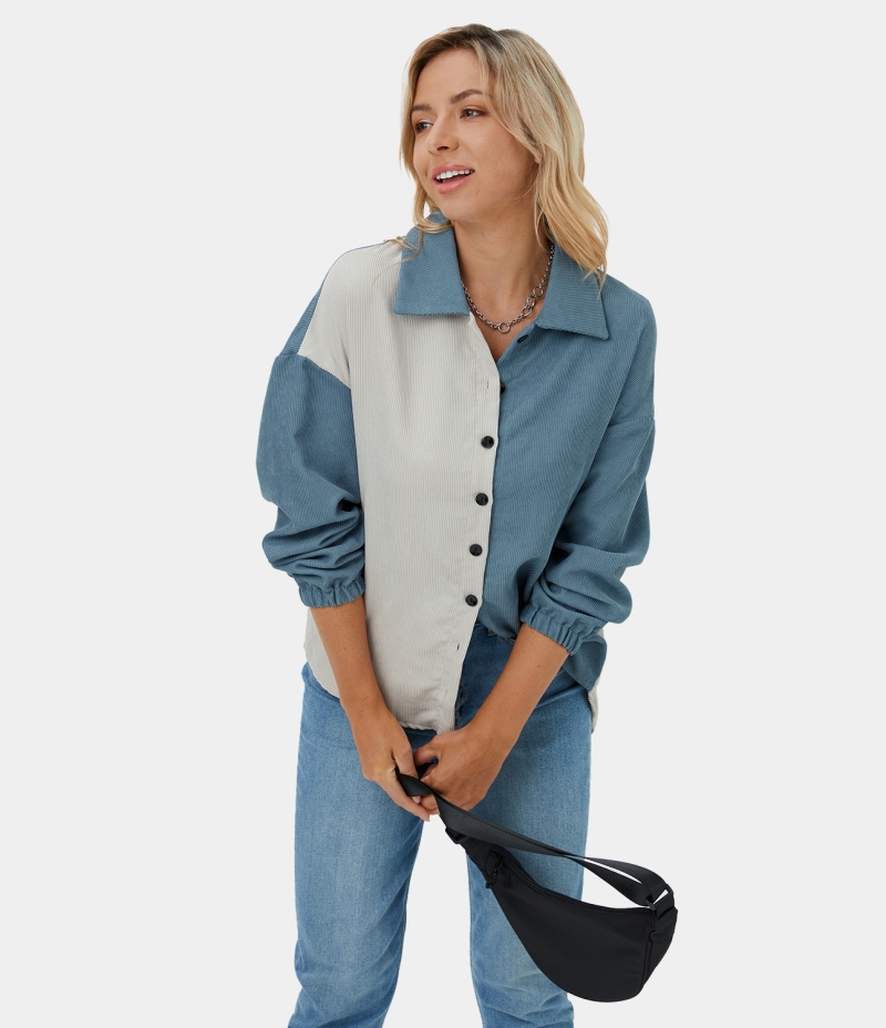 Halara Color Block Collared Button High Low Corduroy Casual Jacket Women's Tops Spring Lake | GYKCMJX-12
