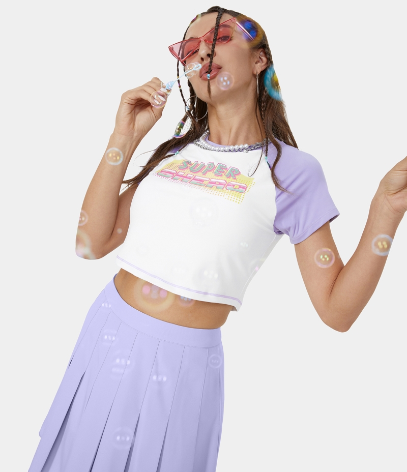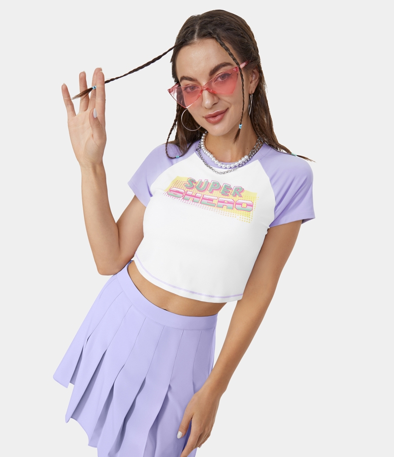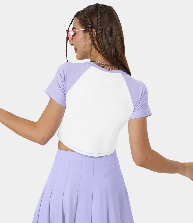 Halara Color Block Letter Print Cropped Casual T-Shirt Women's Tops White | YZPVIBJ-62