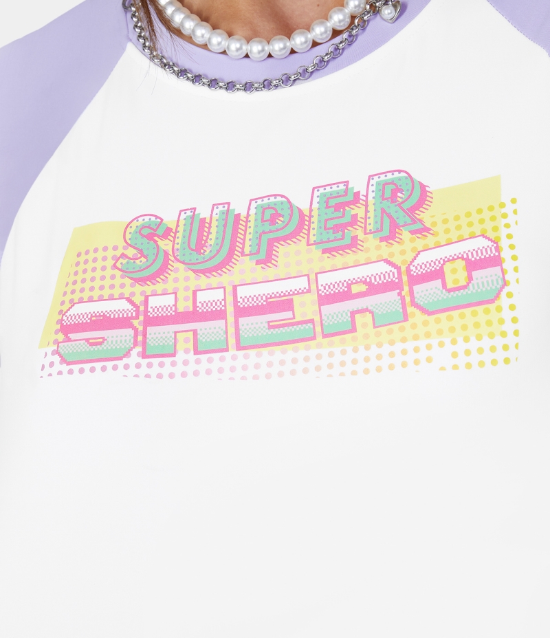 :: Halara Color Block Letter Print Cropped Casual T-Shirt Women's Tops White | YZPVIBJ-62