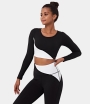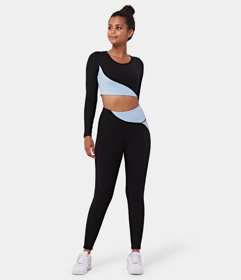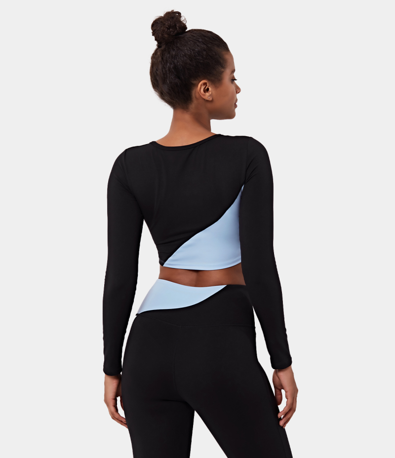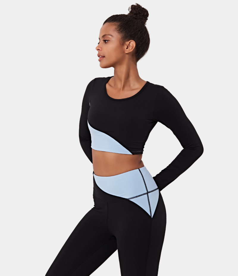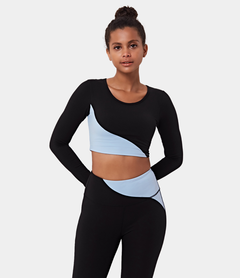 :: Halara Color Block Round Neck Long Sleeve Cropped Sports Women's Tops Carolina Blue | UELSWXN-41