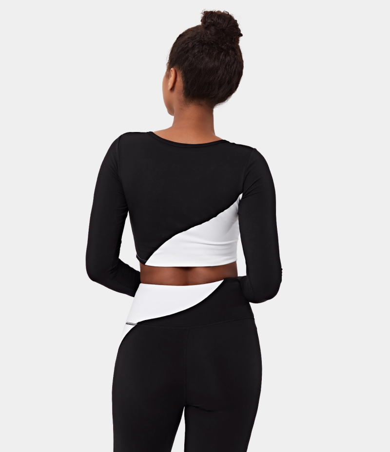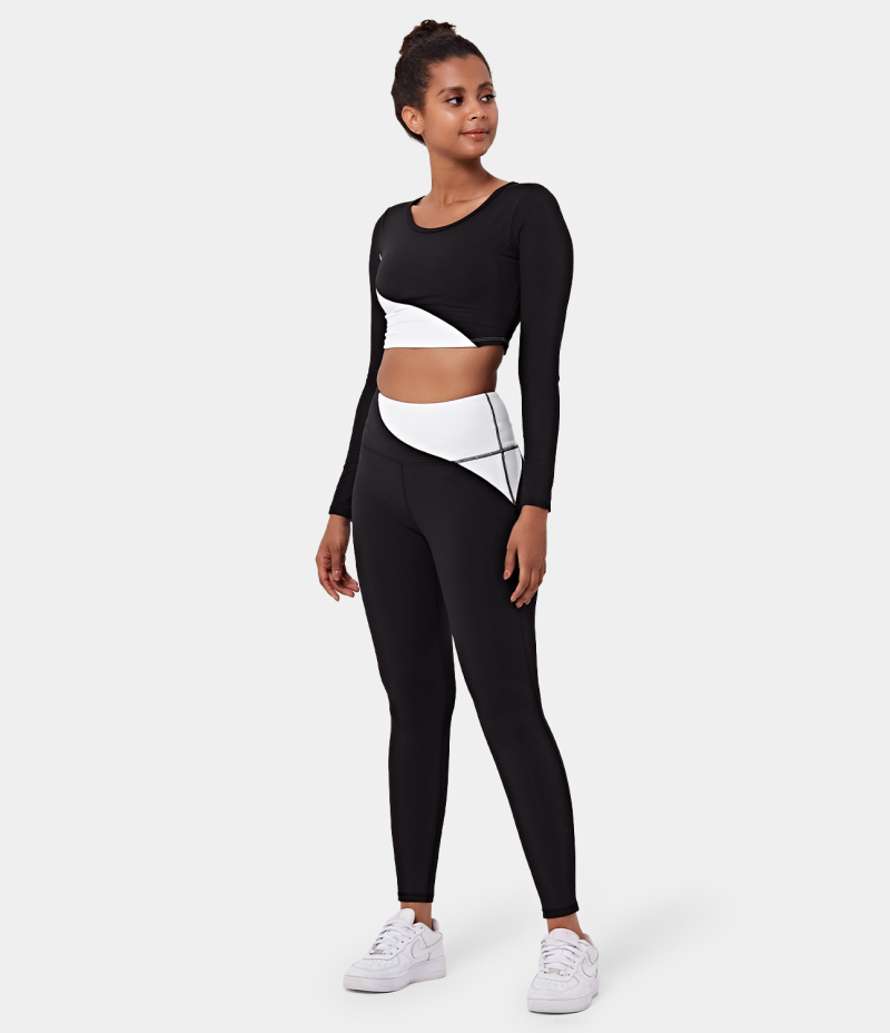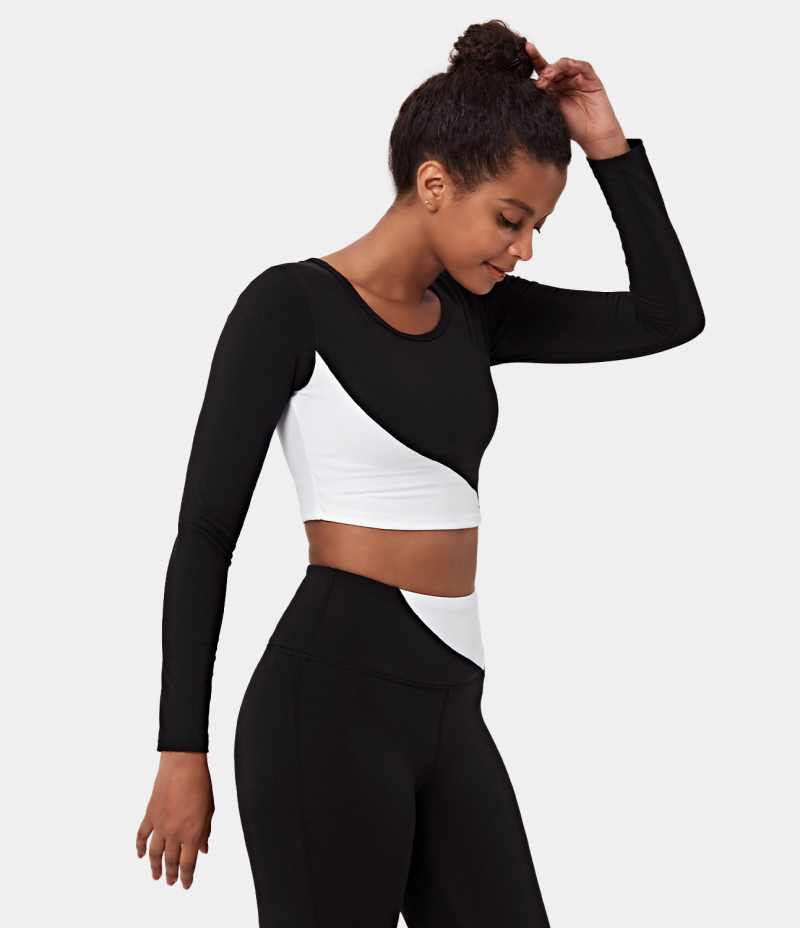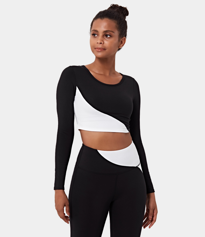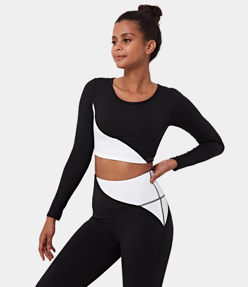 :: Halara Color Block Round Neck Long Sleeve Cropped Sports Women's Tops White | XHJQFAE-52
