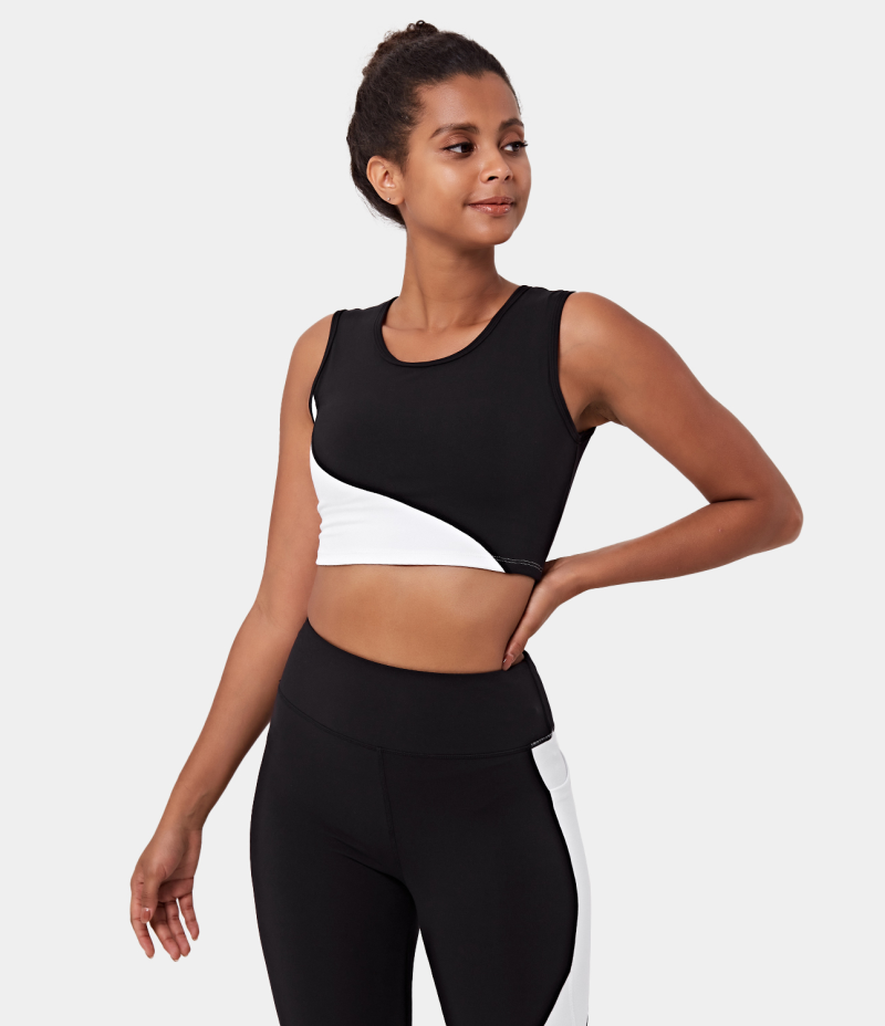 :: Halara Color Block Workout Cropped Tank Women's Tops White | SJVFLOM-05