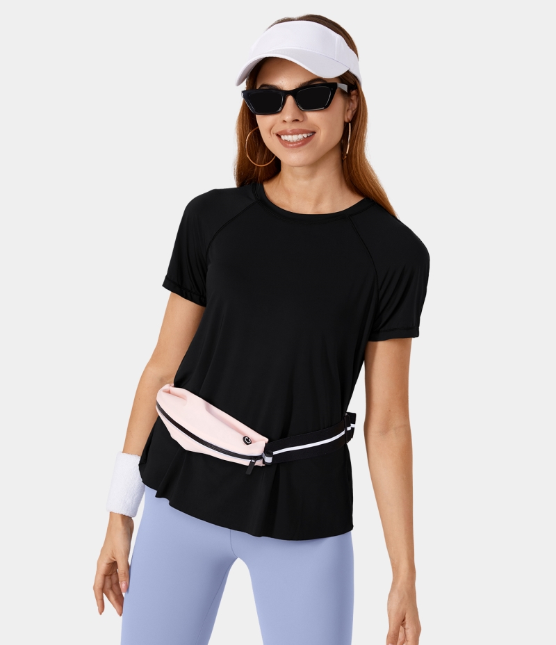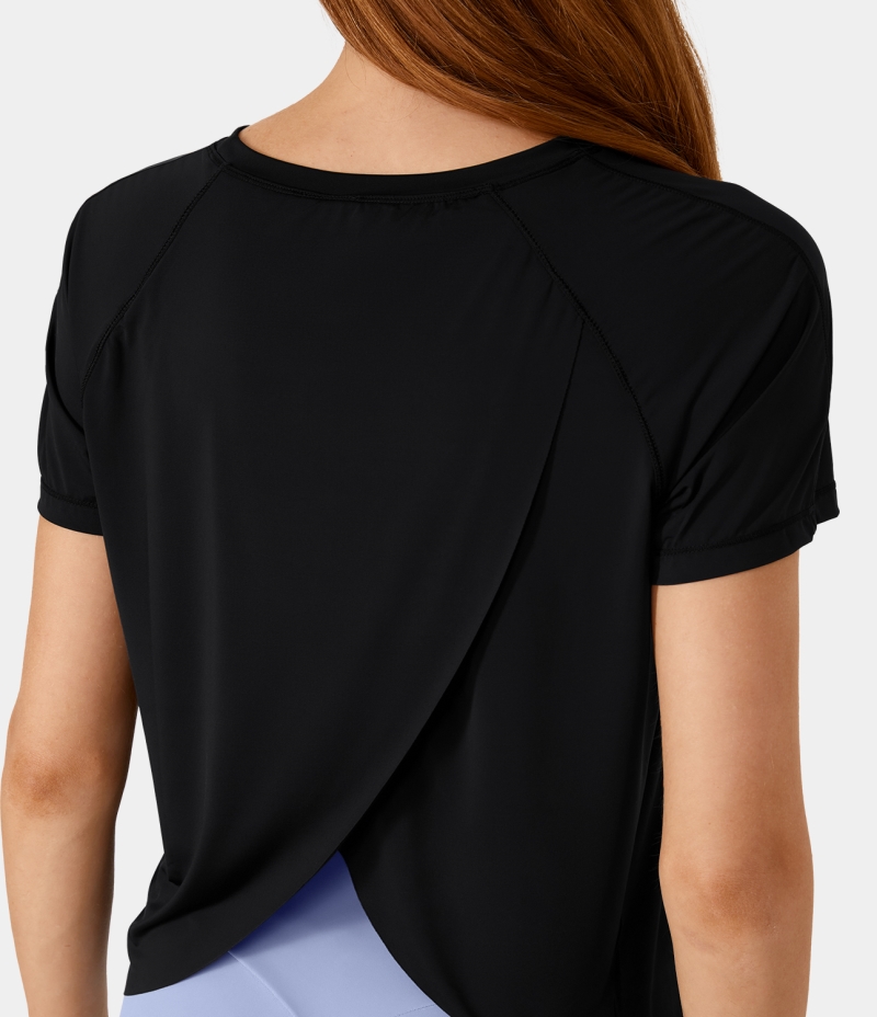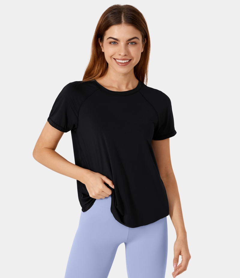 :: Halara Contrast Mesh Split Hem Barre Ballet Dance Sports Women's Tops Black | NSDZMPV-27