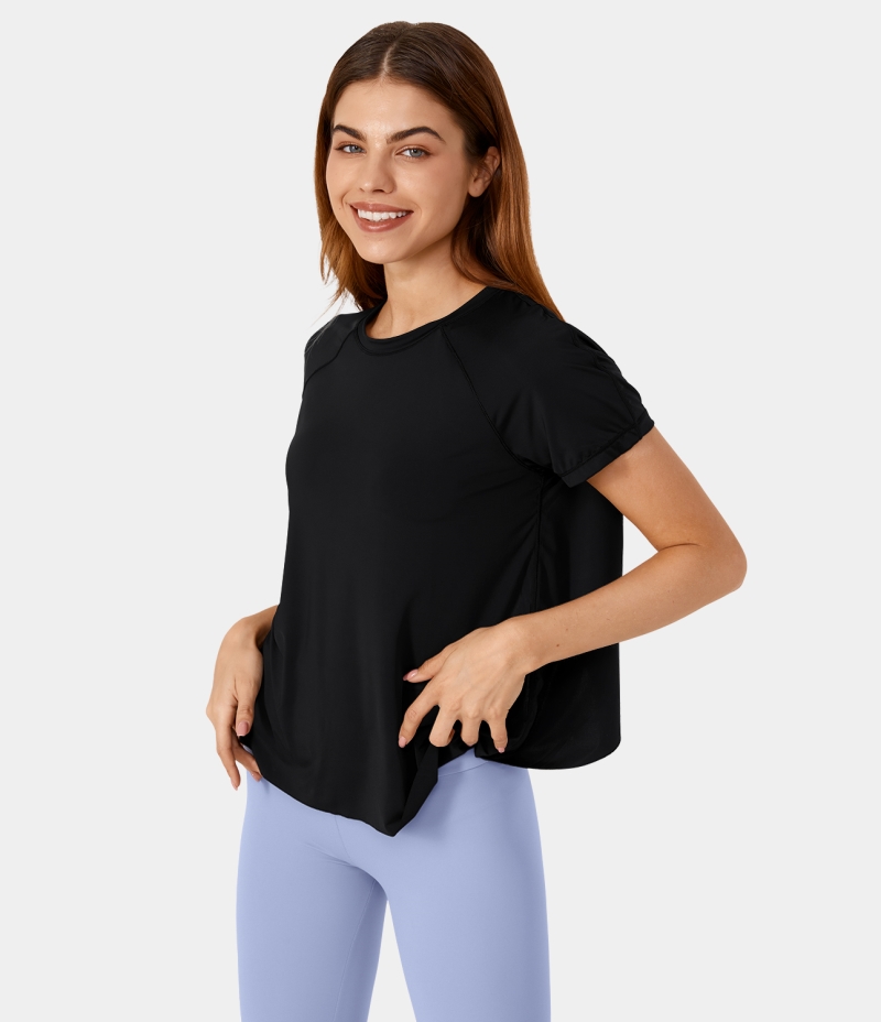 Halara Contrast Mesh Split Hem Barre Ballet Dance Sports Women's Tops Black | NSDZMPV-27