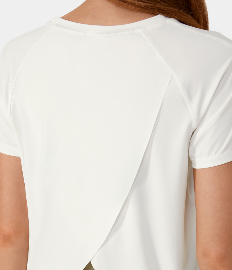 :: Halara Contrast Mesh Split Hem Barre Ballet Dance Sports Women's Tops White | ITJCLAY-97