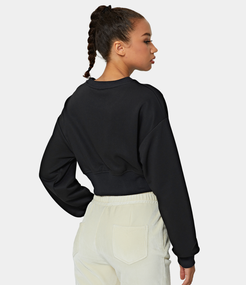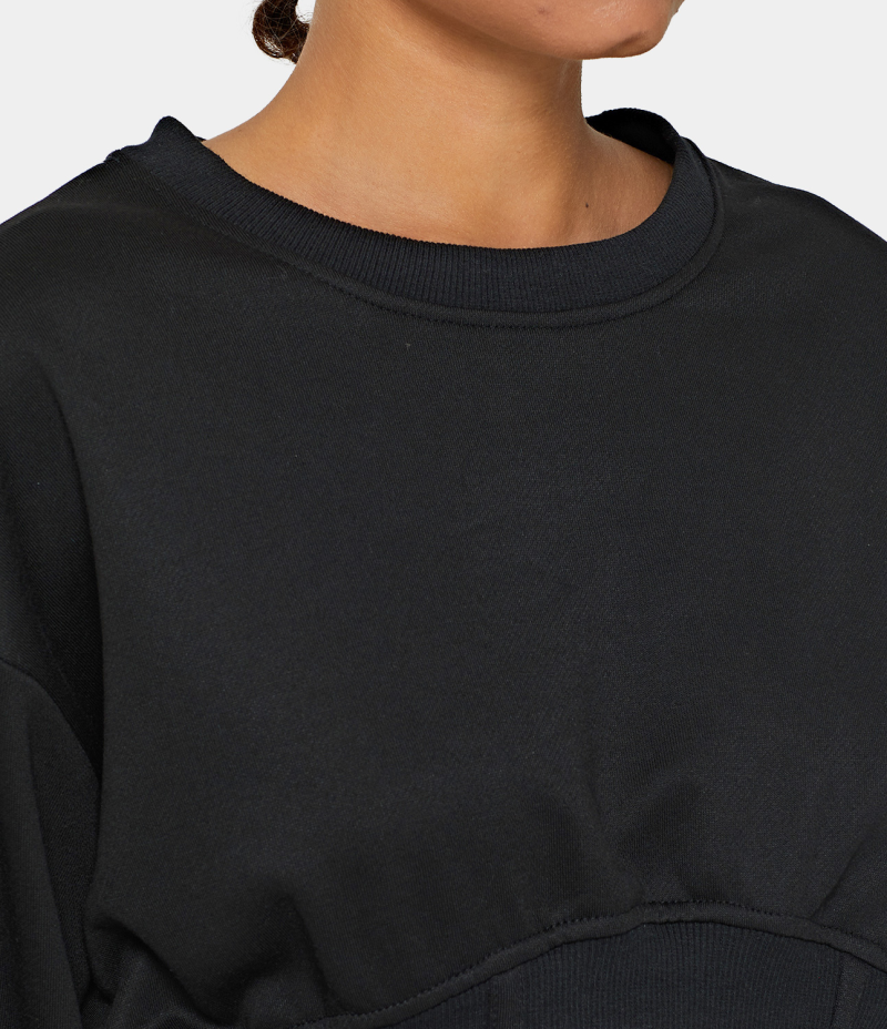 :: Halara Corset Plain Cropped Sweatshirt Women's Tops Black | FBZKPTG-61