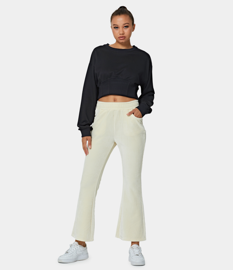 Halara Corset Plain Cropped Sweatshirt Women's Tops Black | FBZKPTG-61