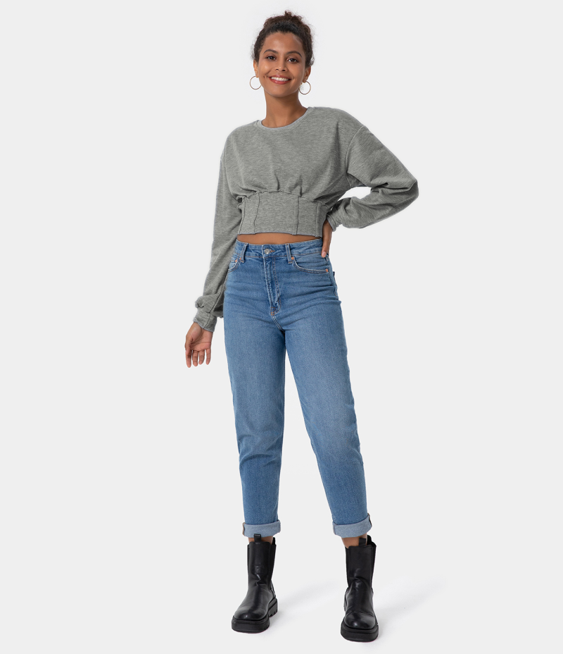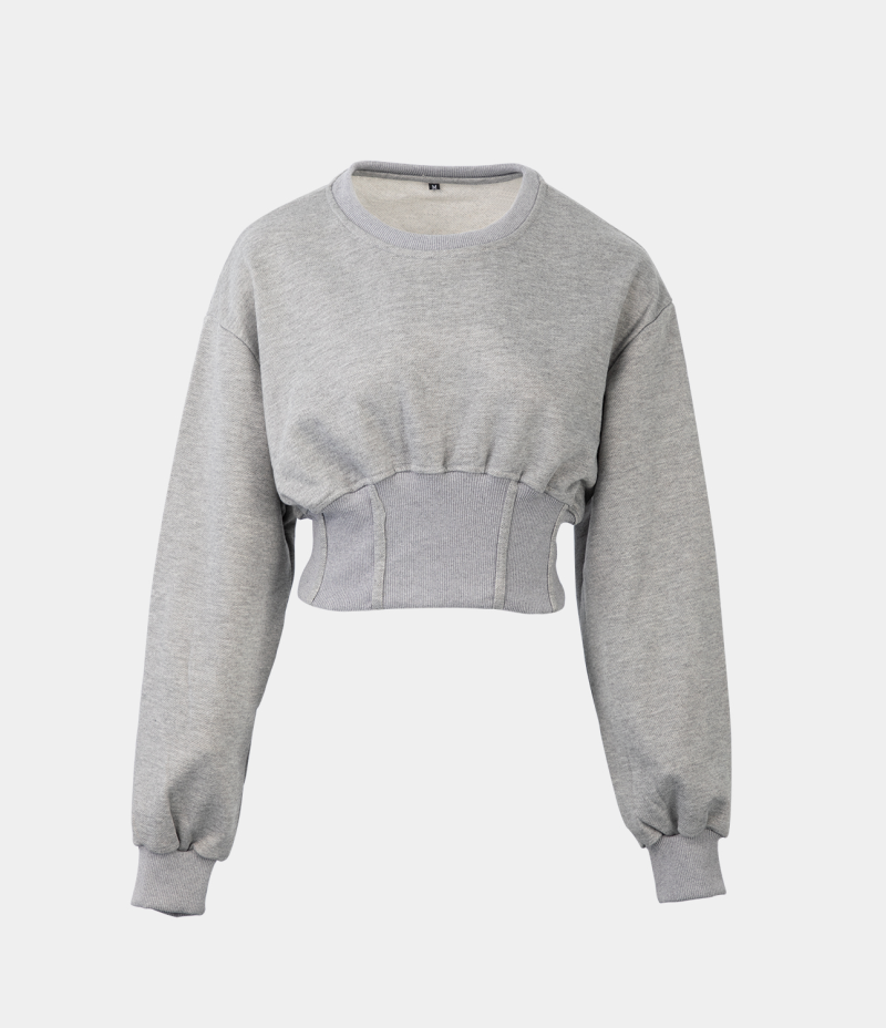 :: Halara Corset Plain Cropped Sweatshirt Women's Tops Grey | GDZKPLX-63