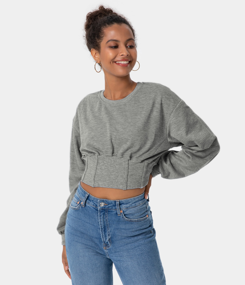 :: Halara Corset Plain Cropped Sweatshirt Women's Tops Grey | OSPNIQM-03