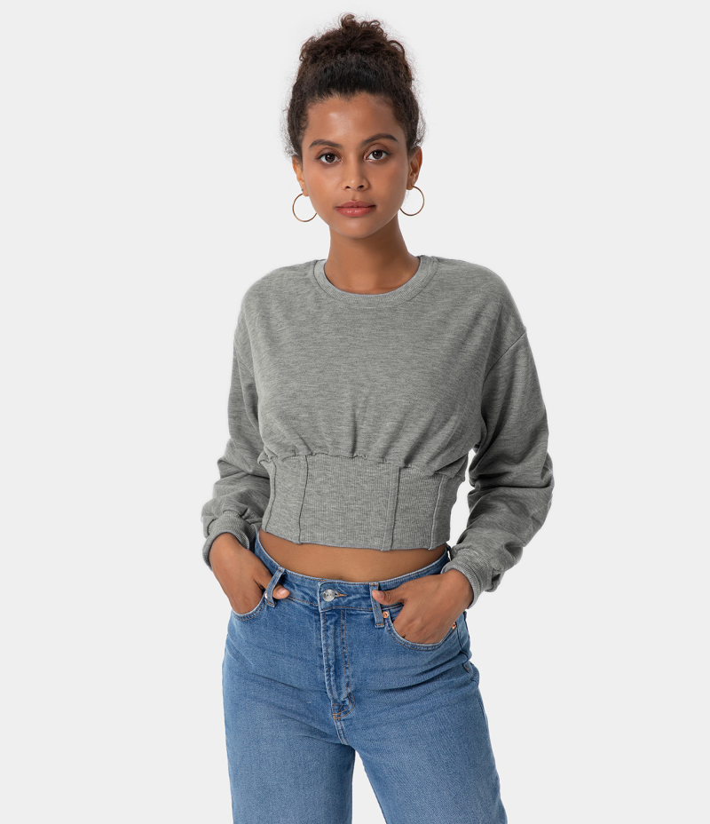 :: Halara Corset Plain Cropped Sweatshirt Women's Tops Grey | RTKHZMI-72