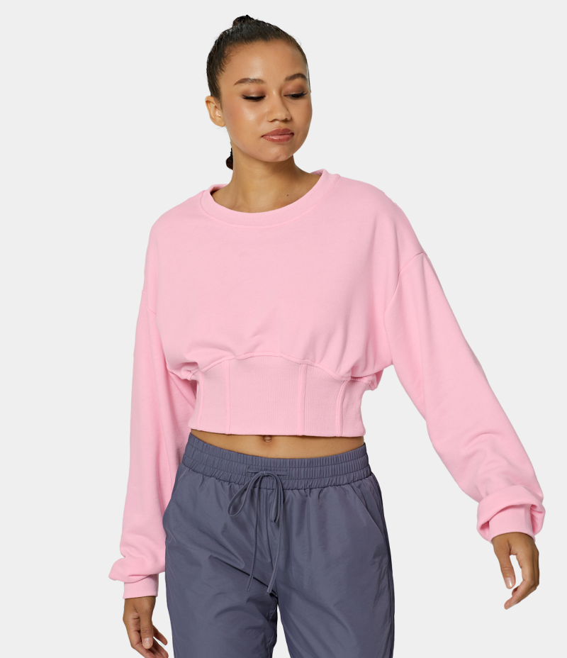 :: Halara Corset Plain Cropped Sweatshirt Women's Tops Putty Pink | FAEIVNY-85