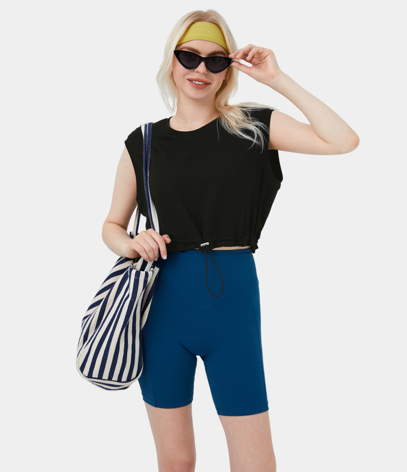 Halara Crew Neck Drawstring Hem Cropped Casual Tank Women's Tops Black | OBCZFTH-14