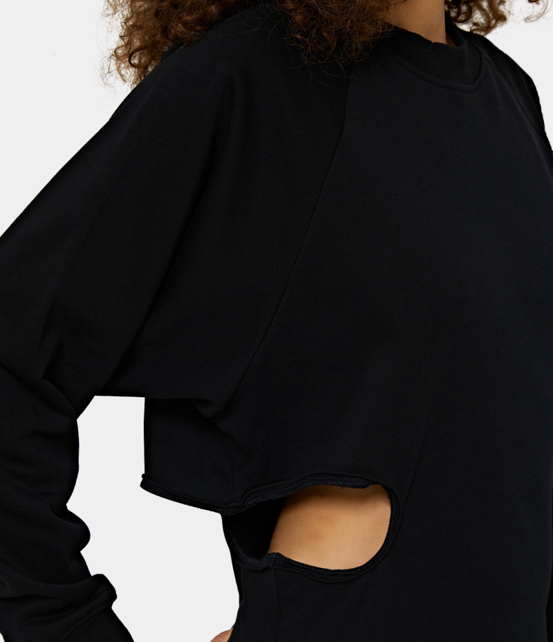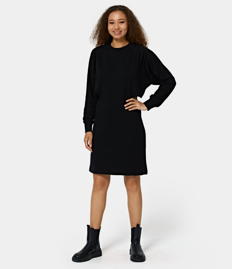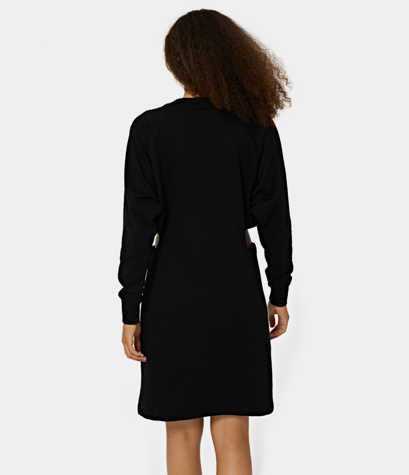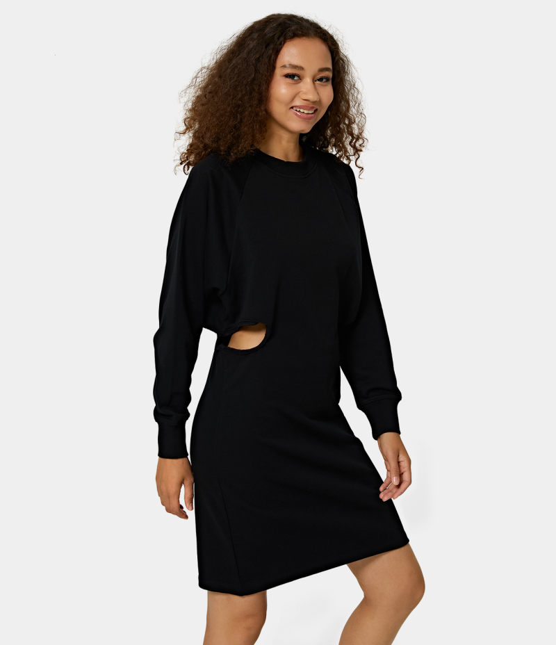 :: Halara Crew Neck Long Sleeve Cut Out Mini Women's Dress Black | 872453-MKH