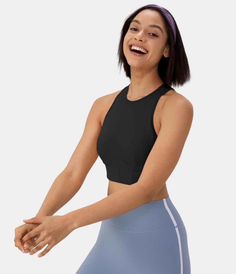 Halara Crew Neck Racerback Cropped Shaping Tank Women's Tops Black | XCELUZP-09