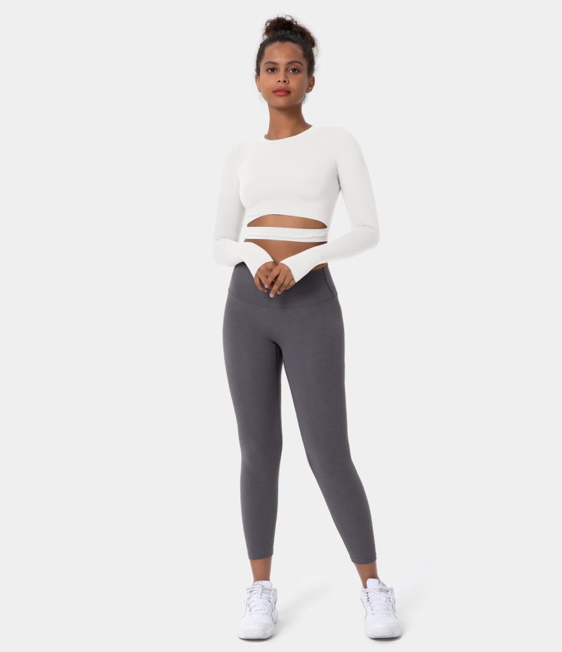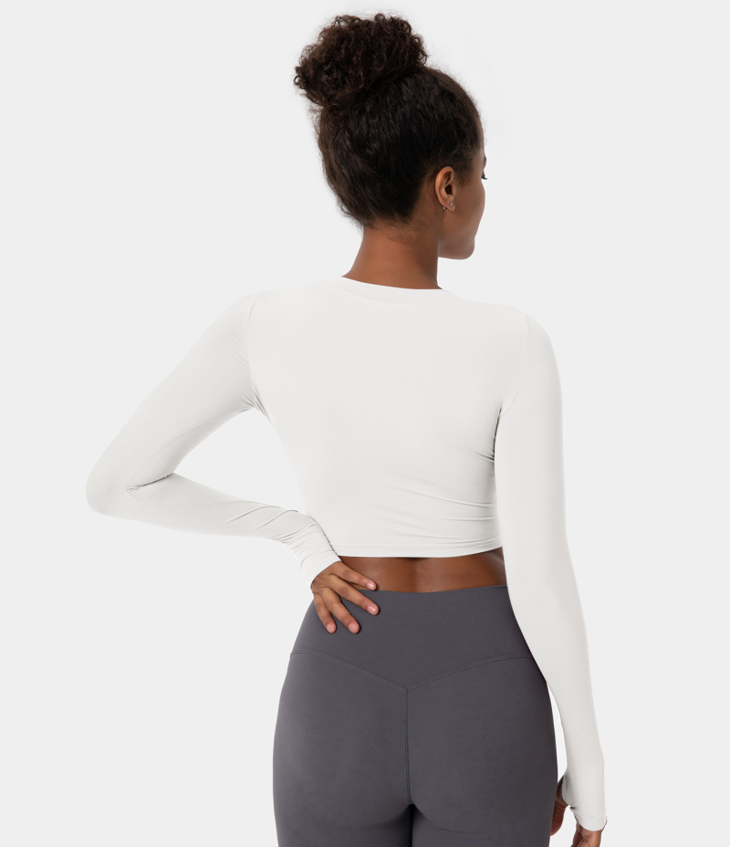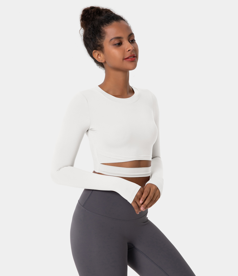 Halara Crew Neck Thumb Hole Cut Out Cropped Sports Women's Tops White | AQRTHJC-72