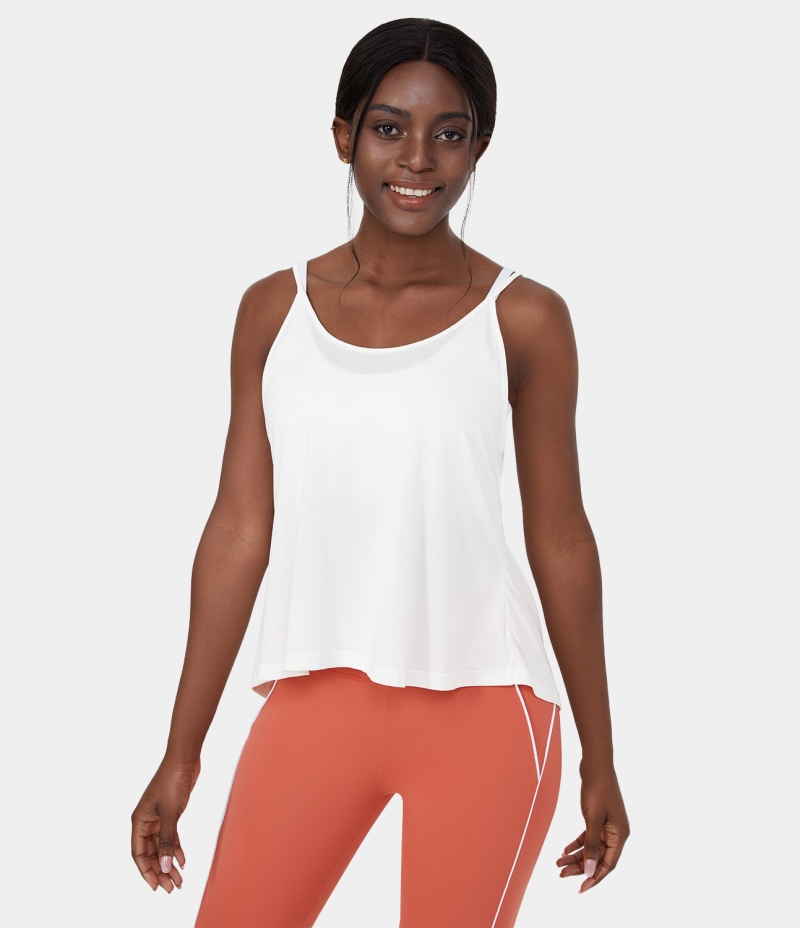 :: Halara Crisscross Backless Tie Back Yoga Tank Women's Tops White | MYFVGWK-25