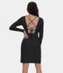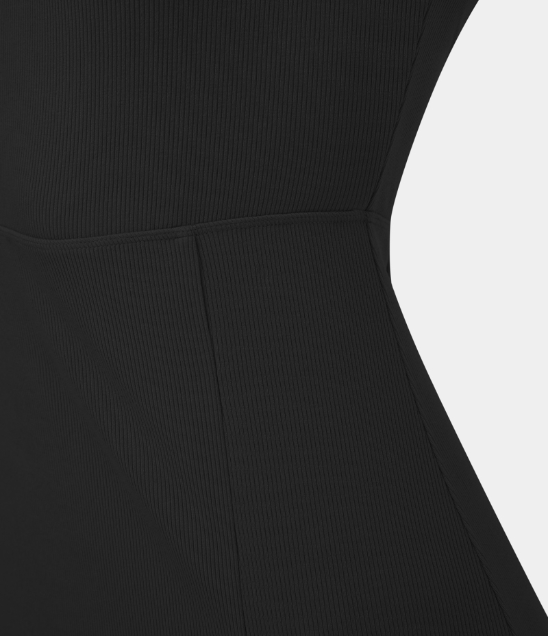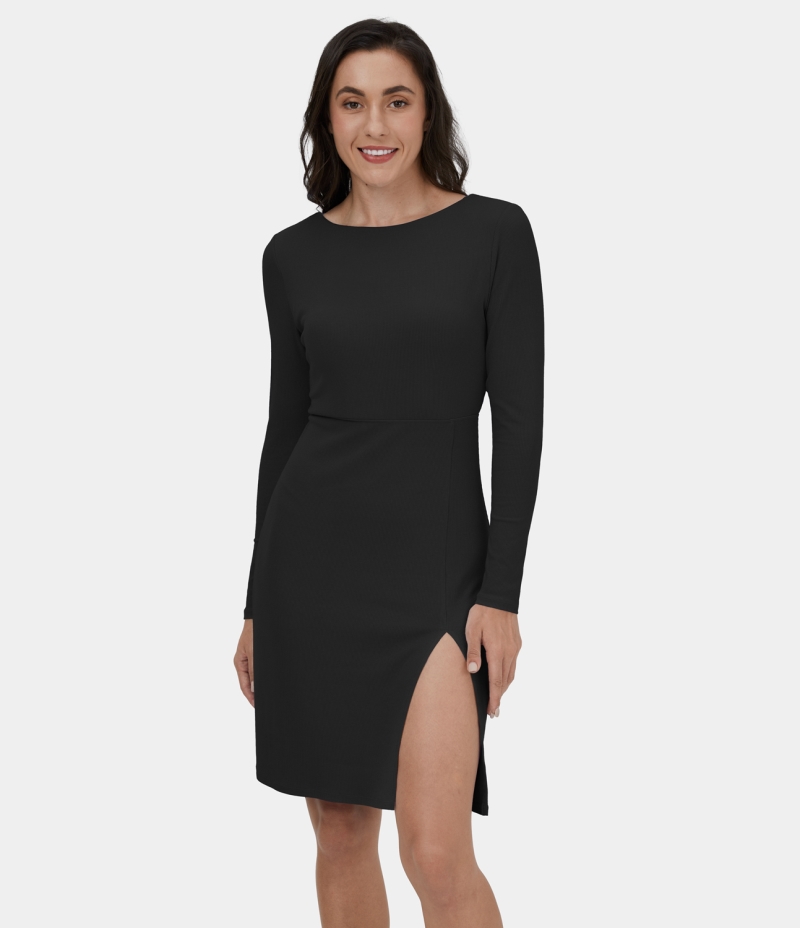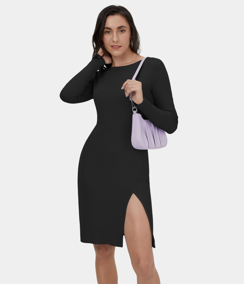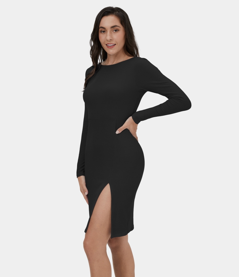 :: Halara Crisscross Lace Up Side Split Midi Casual Women's Dress Black | 826154-AWN