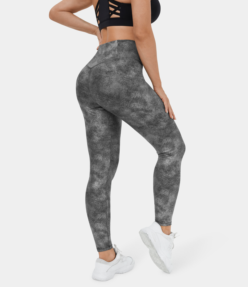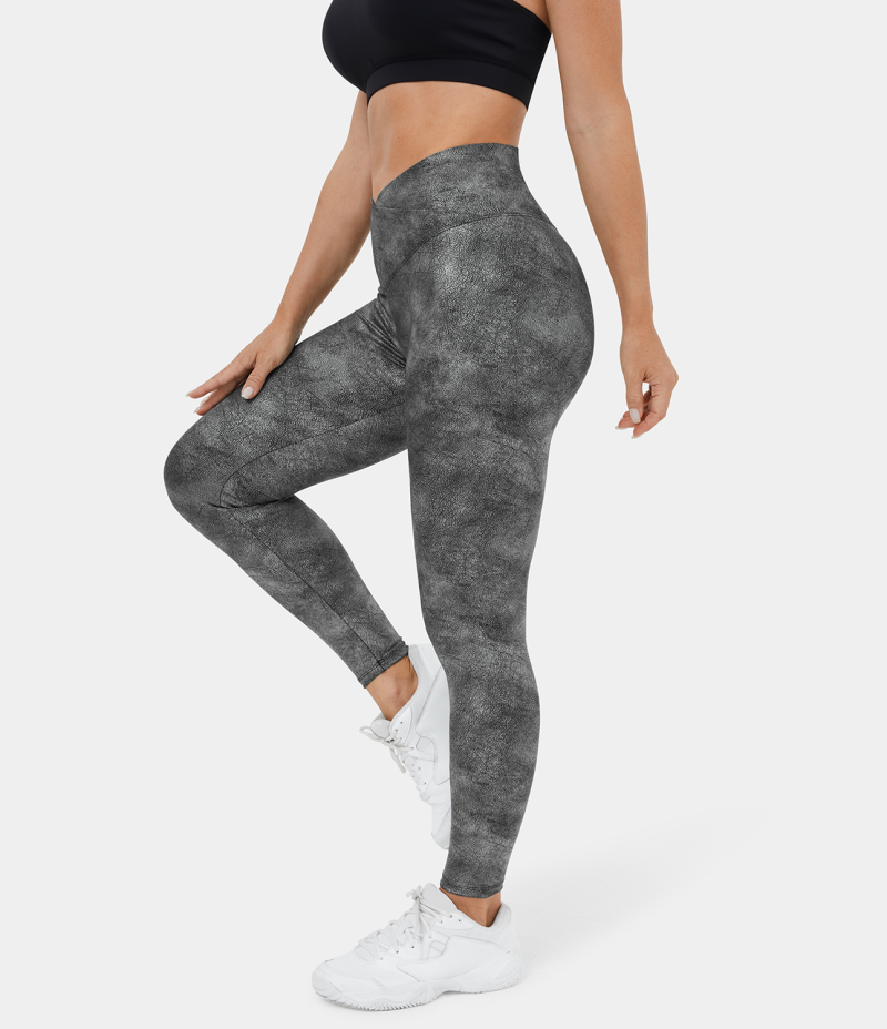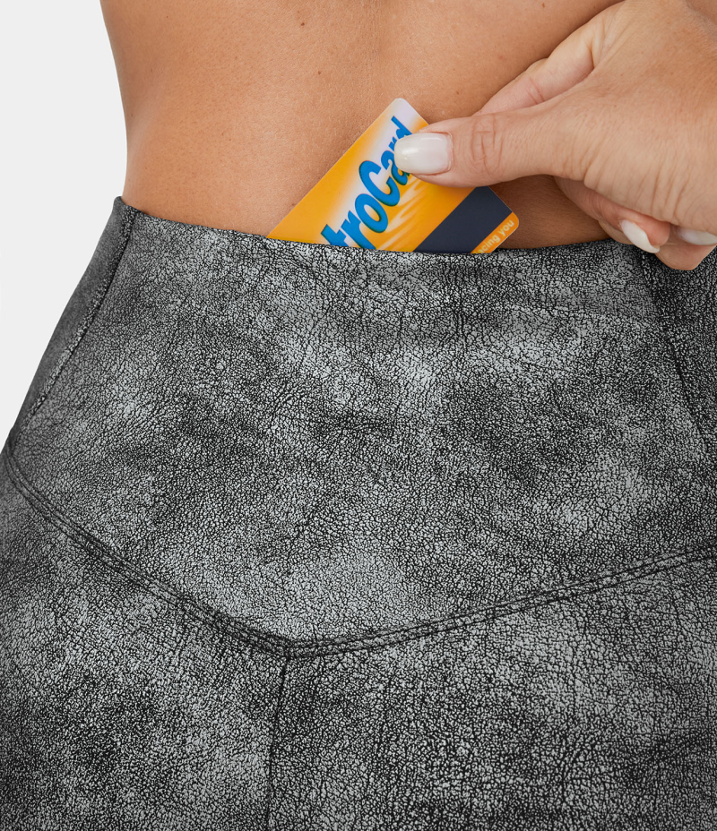 :: Halara Crossover Back Pocket Stretchy Crackle Yoga 7/8 Women's Leggings Metallic Black | 932658-TZO