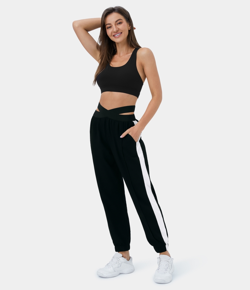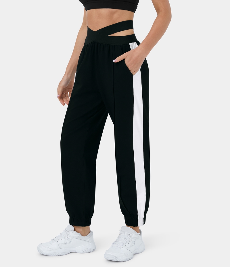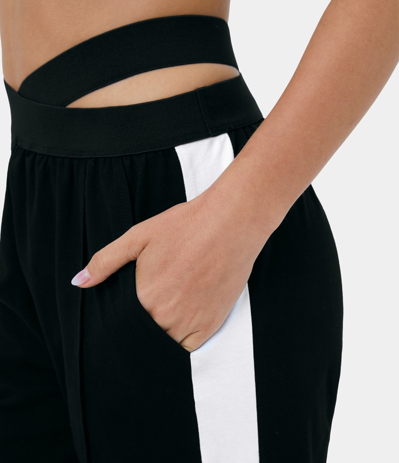 Halara Crossover Cut Out Side Pocket Color Block Casual Women's Jogger Black | 462813-PAN