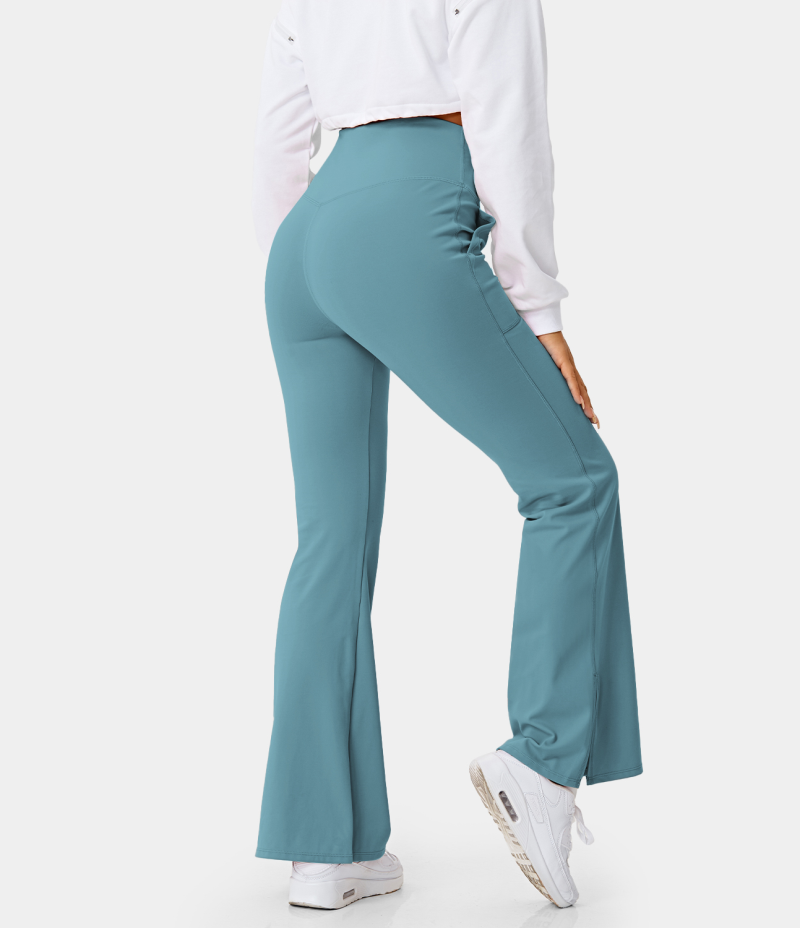 Halara Crossover Pocket Split Hem Full Length Flare-Smile Women's Leggings Adriatic Blue | 398016-PEM