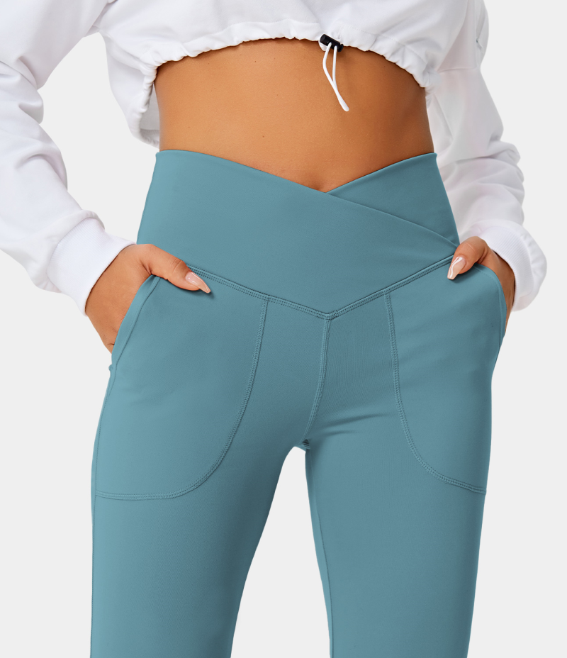 :: Halara Crossover Pocket Split Hem Full Length Flare-Smile Women's Leggings Adriatic Blue | 398016-PEM