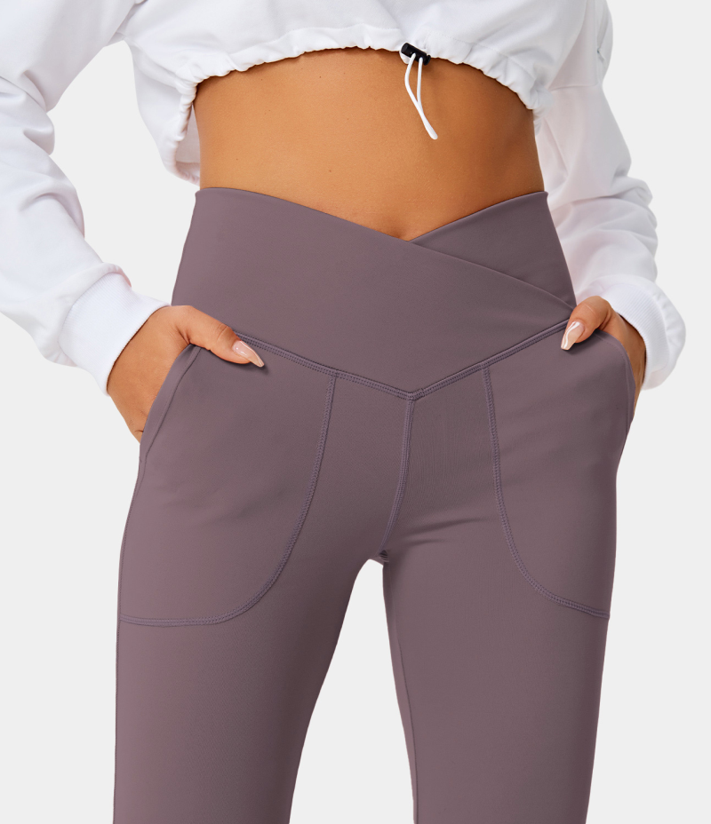:: Halara Crossover Pocket Split Hem Full Length Flare-Smile Women's Leggings Arctic Dusk | 035874-CVJ