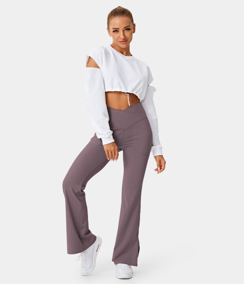 :: Halara Crossover Pocket Split Hem Full Length Flare-Smile Women's Leggings Arctic Dusk | 418357-ZGX
