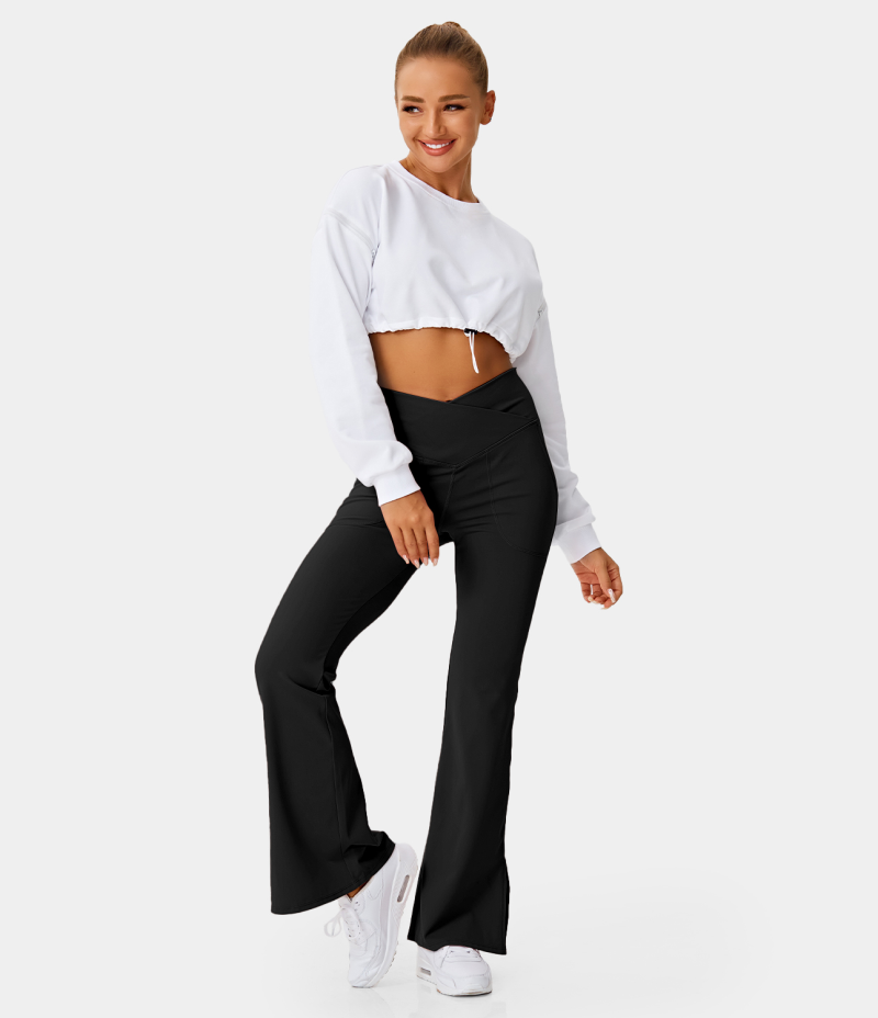 :: Halara Crossover Pocket Split Hem Full Length Flare-Smile Women's Leggings Black | 168405-BLU