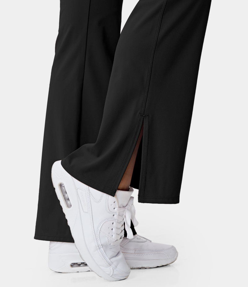 :: Halara Crossover Pocket Split Hem Full Length Flare-Smile Women's Leggings Black | 274618-WPR