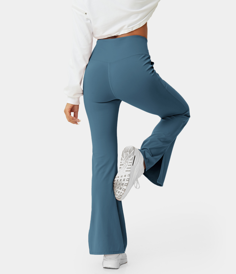 :: Halara Crossover Pocket Split Hem Full Length Flare-Smile Women's Leggings Blue Ashes | 340289-WCP