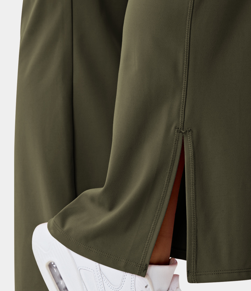 Halara Crossover Pocket Split Hem Full Length Flare-Smile Women's Leggings Ivy Green | 507641-CKH