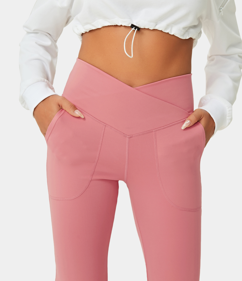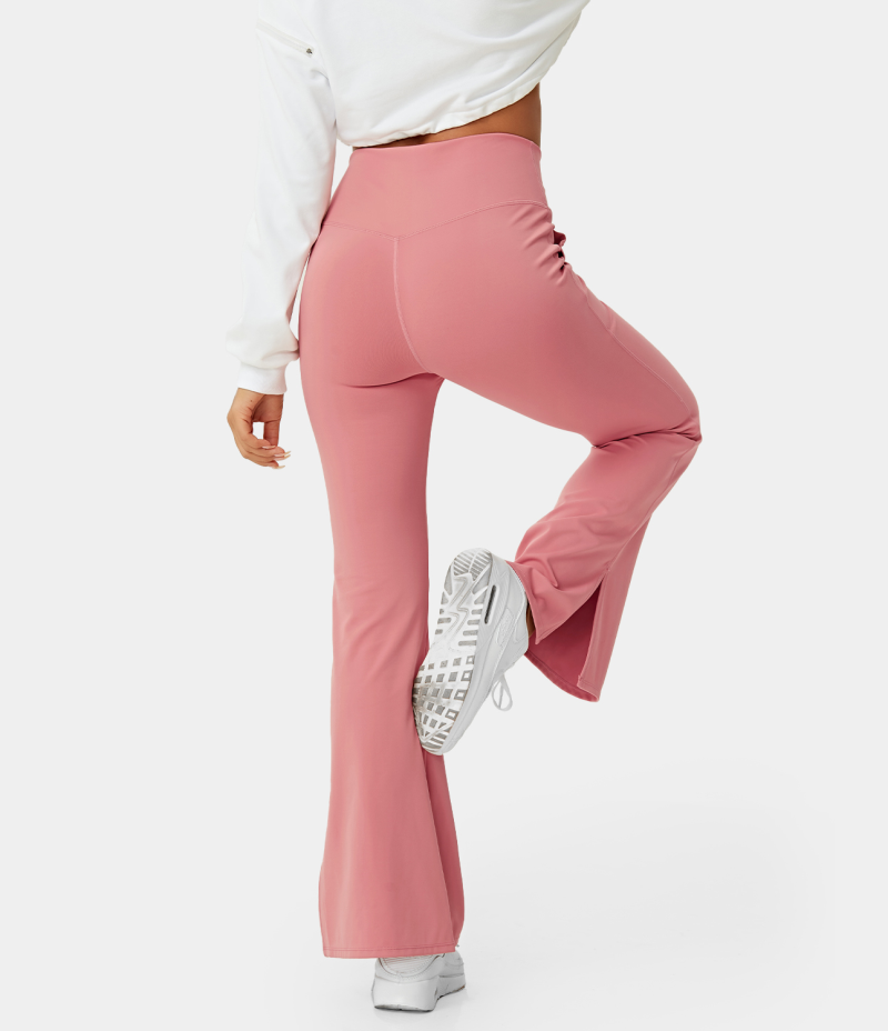 :: Halara Crossover Pocket Split Hem Full Length Flare-Smile Women's Leggings Pink Icing | 438209-XUE