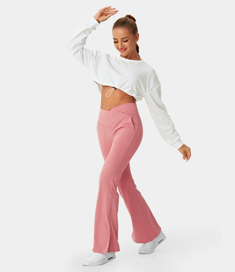 :: Halara Crossover Pocket Split Hem Full Length Flare-Smile Women's Leggings Pink Icing | 754289-DRU