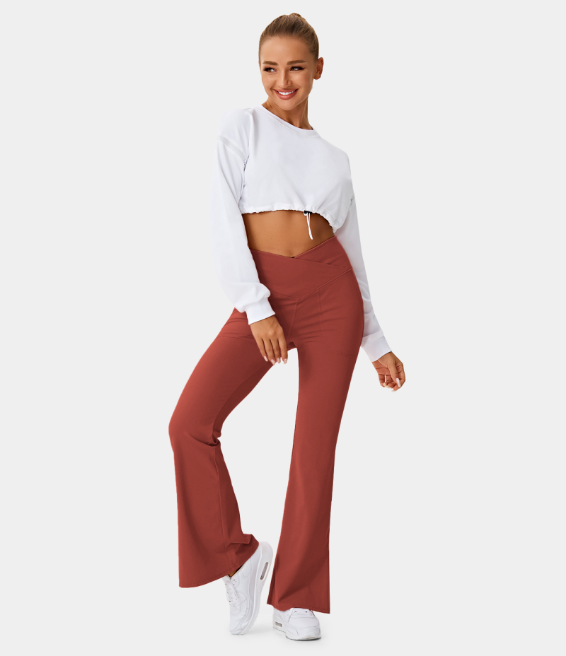 :: Halara Crossover Pocket Split Hem Full Length Flare-Smile Women's Leggings Rooibos Tea | 307689-RIX