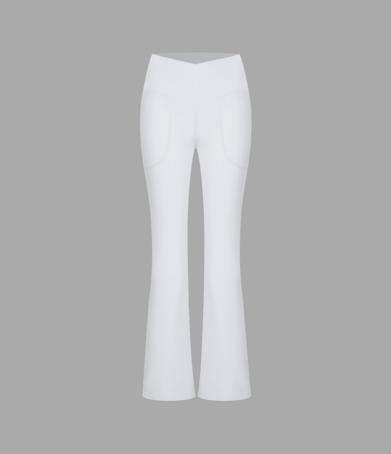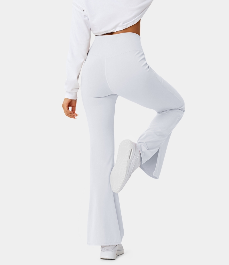 :: Halara Crossover Pocket Split Hem Full Length Flare-Smile Women's Leggings White | 645982-UIB