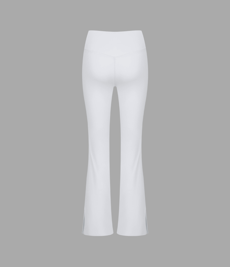 :: Halara Crossover Pocket Split Hem Full Length Flare-Smile Women's Leggings White | 708396-XCV