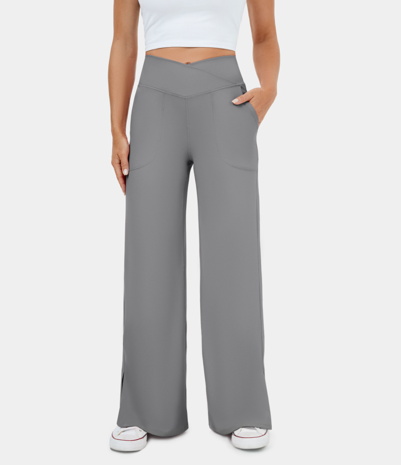 :: Halara Crossover Pocket Split Hem Wide Leg Yoga-Smile Women's Pants Wet Weather | 491256-TAE