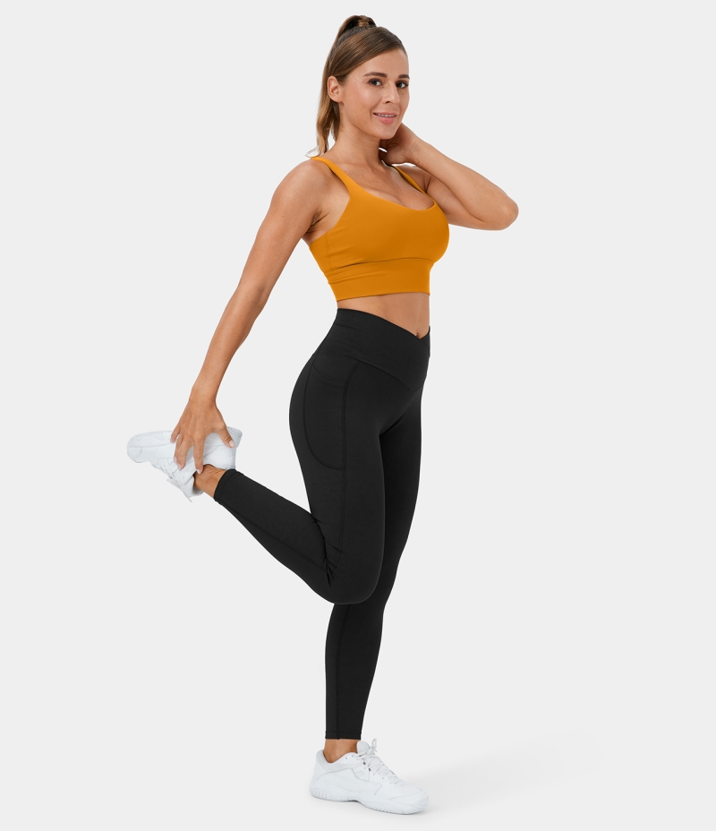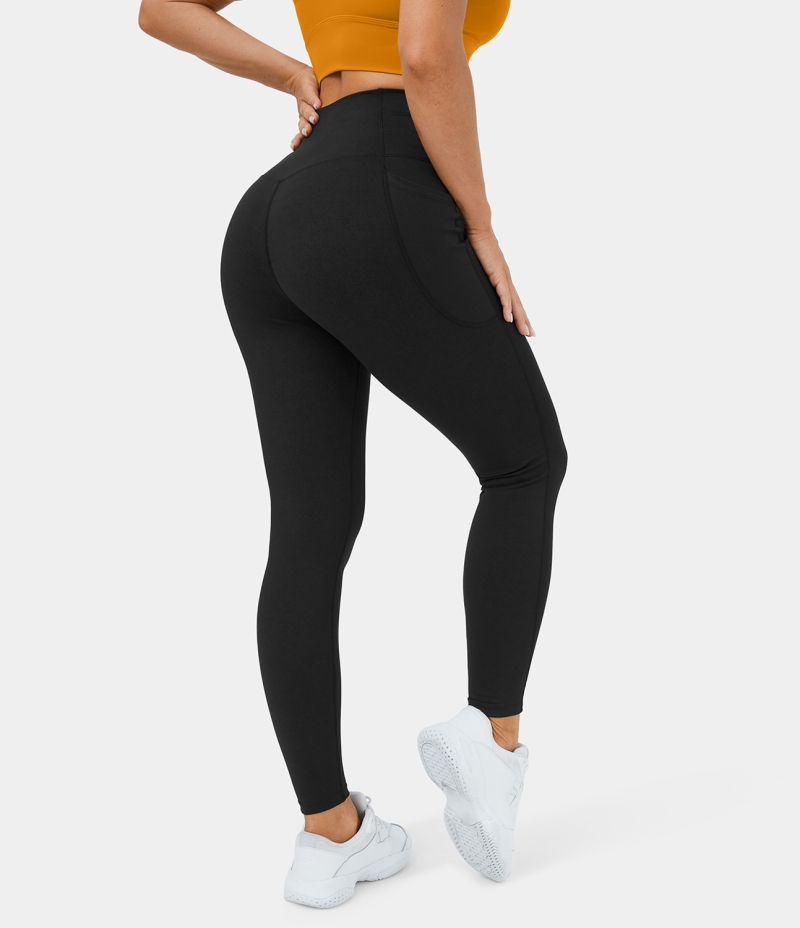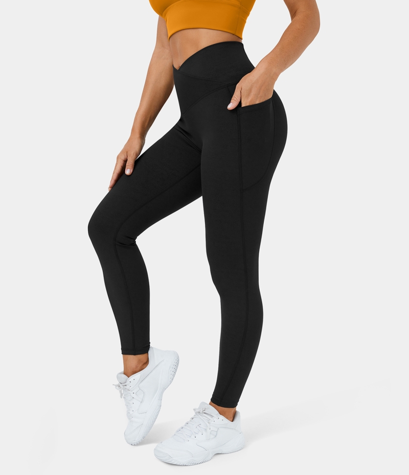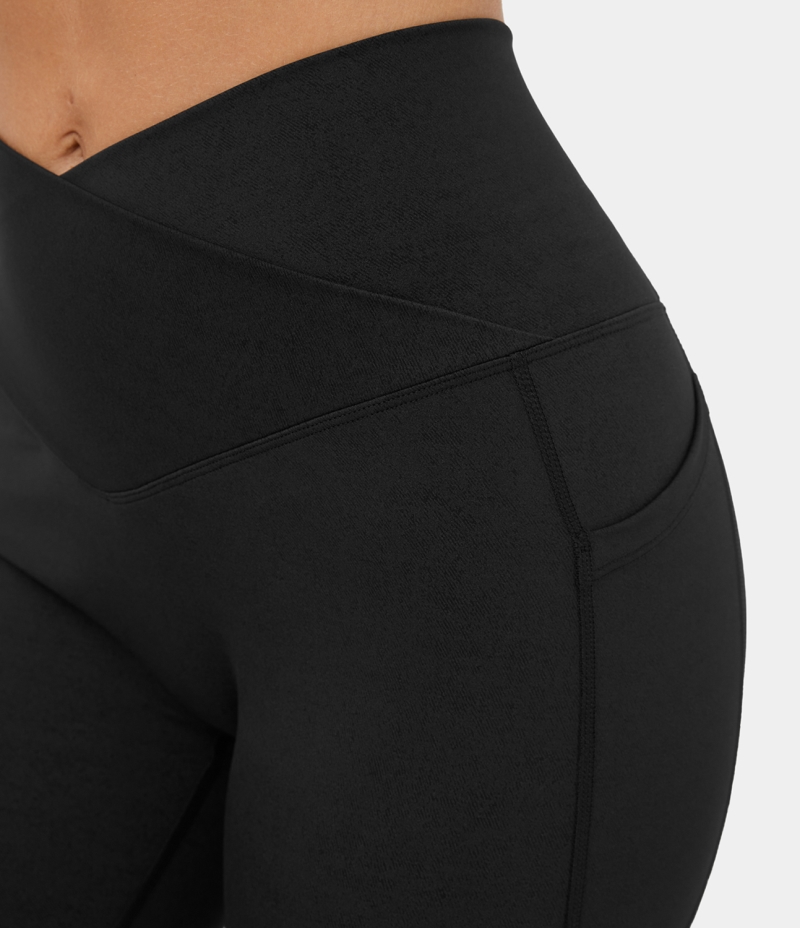 :: Halara Crossover Pocket Stretchy Denim Print 7/8 Women's Leggings Denim Black | 374861-TGM