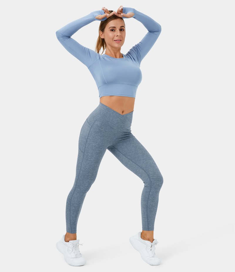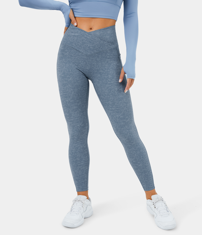 :: Halara Crossover Pocket Stretchy Denim Print 7/8 Women's Leggings Denim Dark Blue | 259067-ZVG