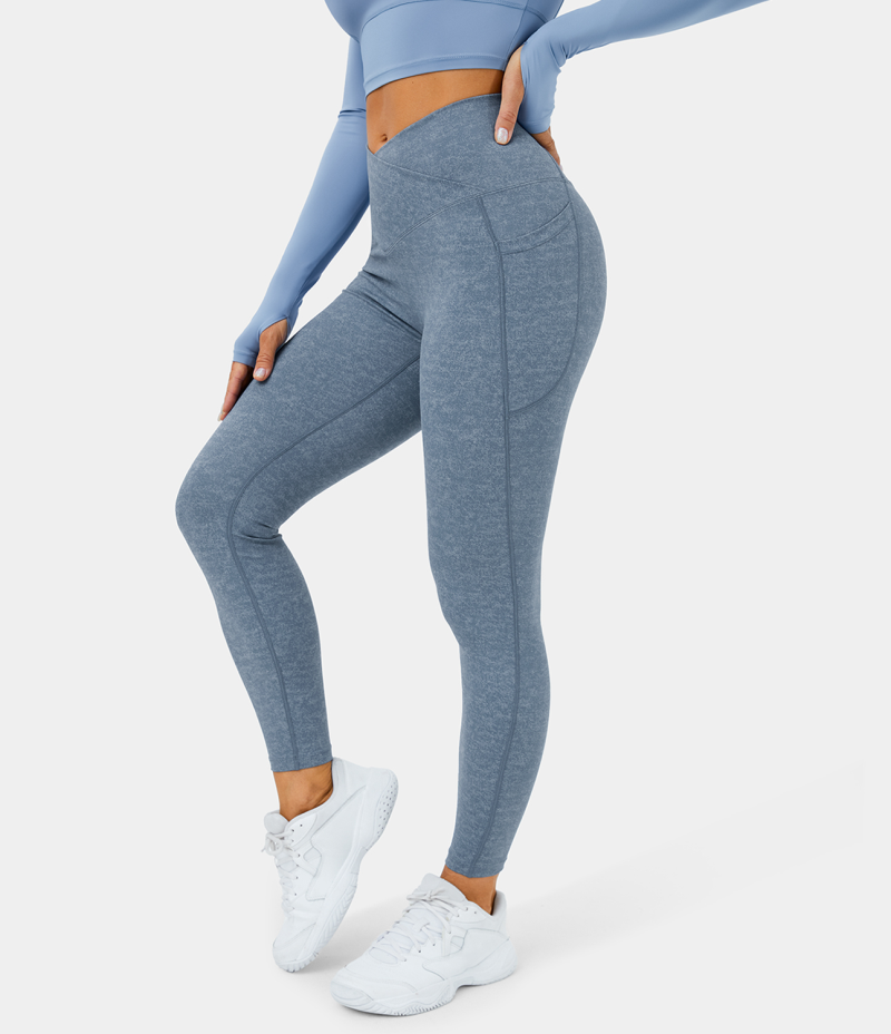 Halara Crossover Pocket Stretchy Denim Print 7/8 Women's Leggings Denim Dark Blue | 259067-ZVG