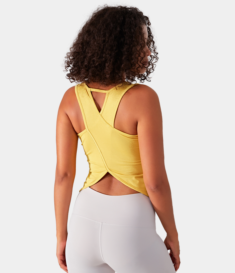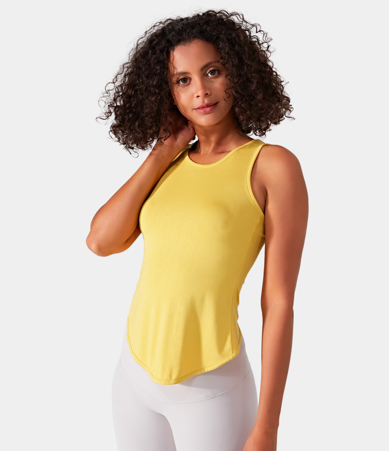 :: Halara Cut Out Asymmetric Hem Casual Tank Women's Tops Butterscotch | HVAWLCD-75