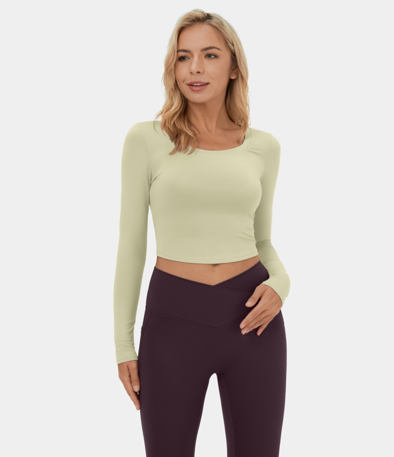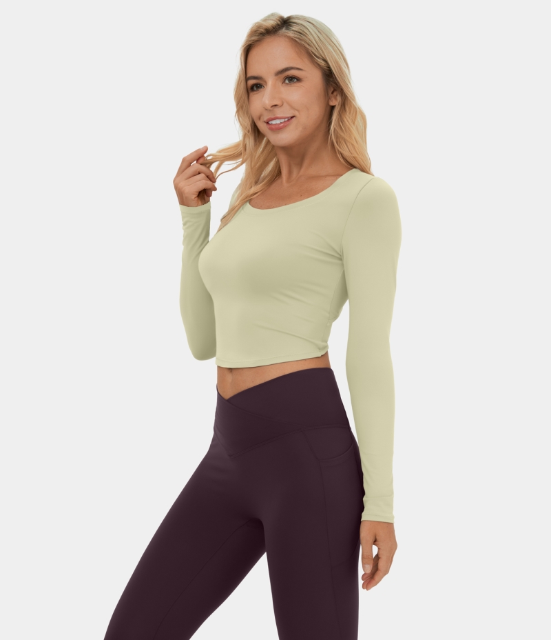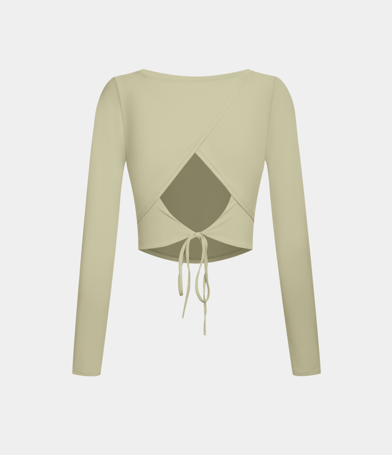 :: Halara Cut Out Lace Up Cropped Barre Ballet Dance Sports Women's Tops Bone White | SKAPOLM-24