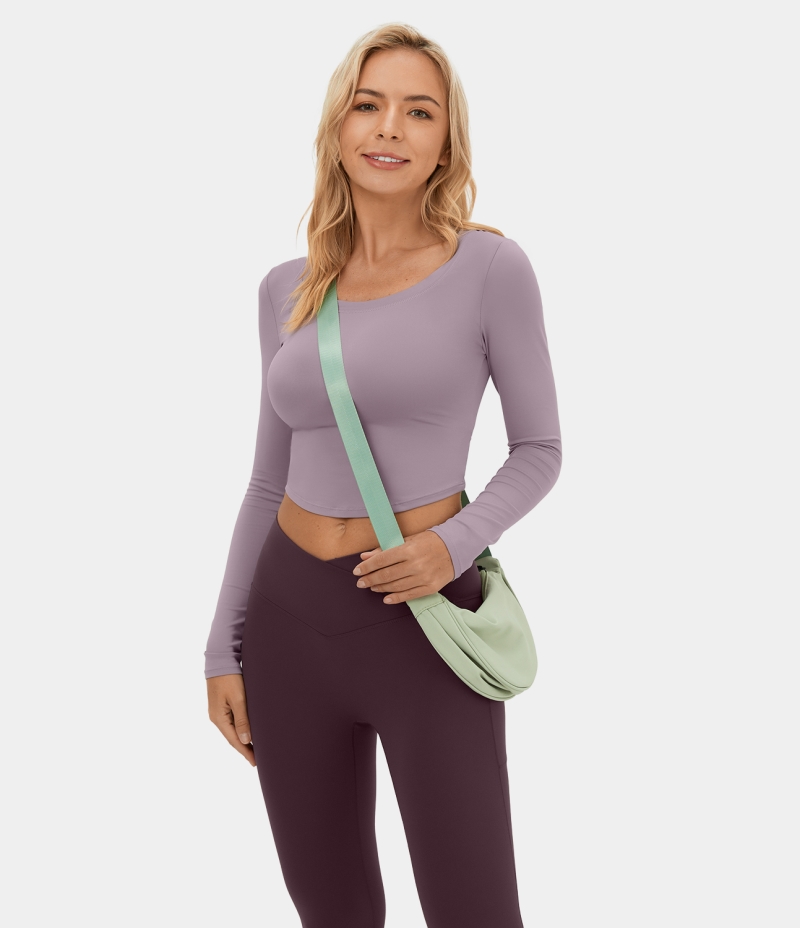 Halara Cut Out Lace Up Cropped Barre Ballet Dance Sports Women's Tops Iris Purple | SXZKGLO-82
